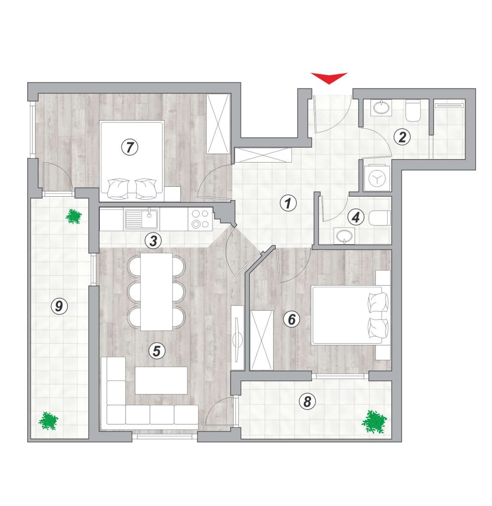 Lamela 1 – Stan broj 37 – trosoban 61,59m²
