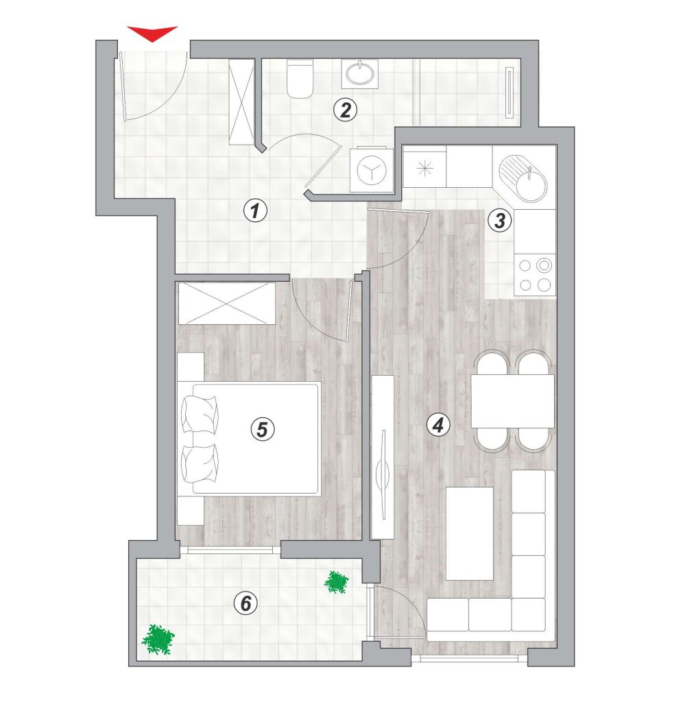 Lamela 1 – Stan broj 45 – dvosoban 40,54m²
