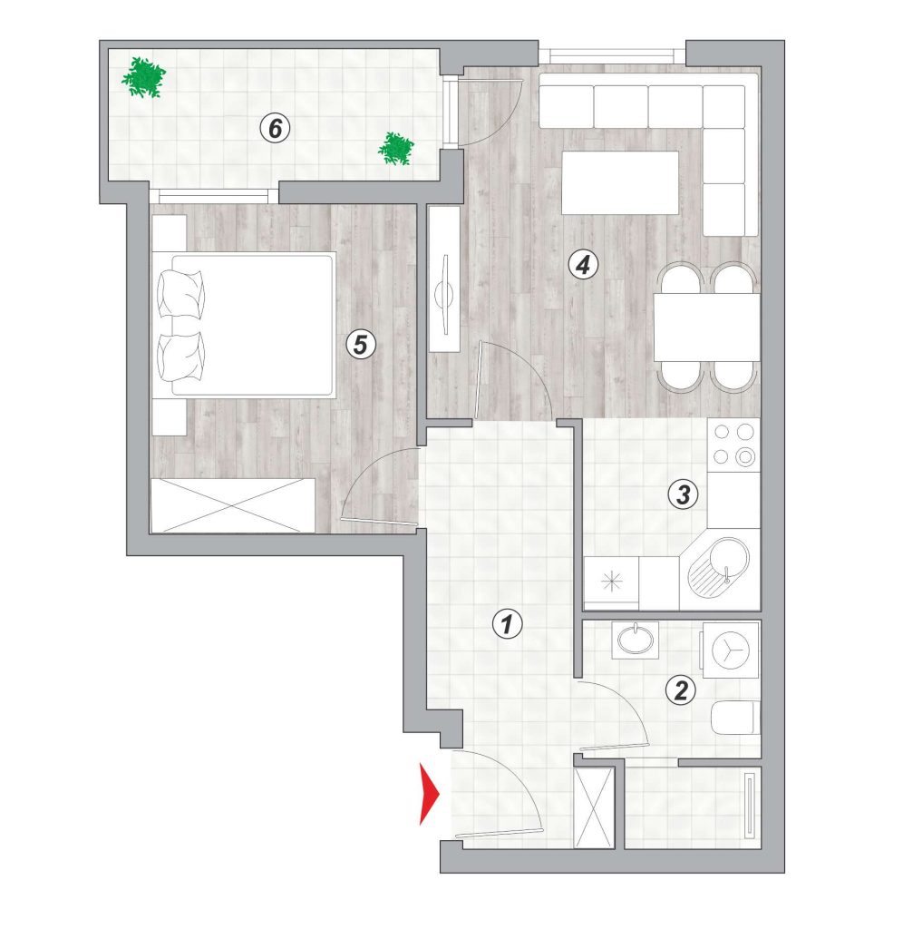 Lamela 1 – Stan broj 52 – dvosoban 41,72m²