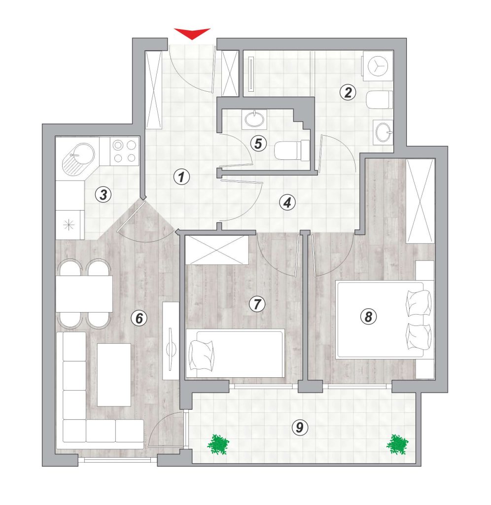 Lamela 1 – Stan broj 6 – trosoban 50,92m²
