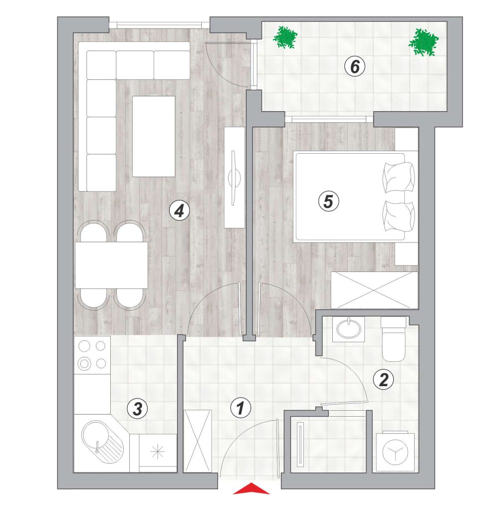 Lamela 1 – Stan broj 60 – dvosoban 34,89m²