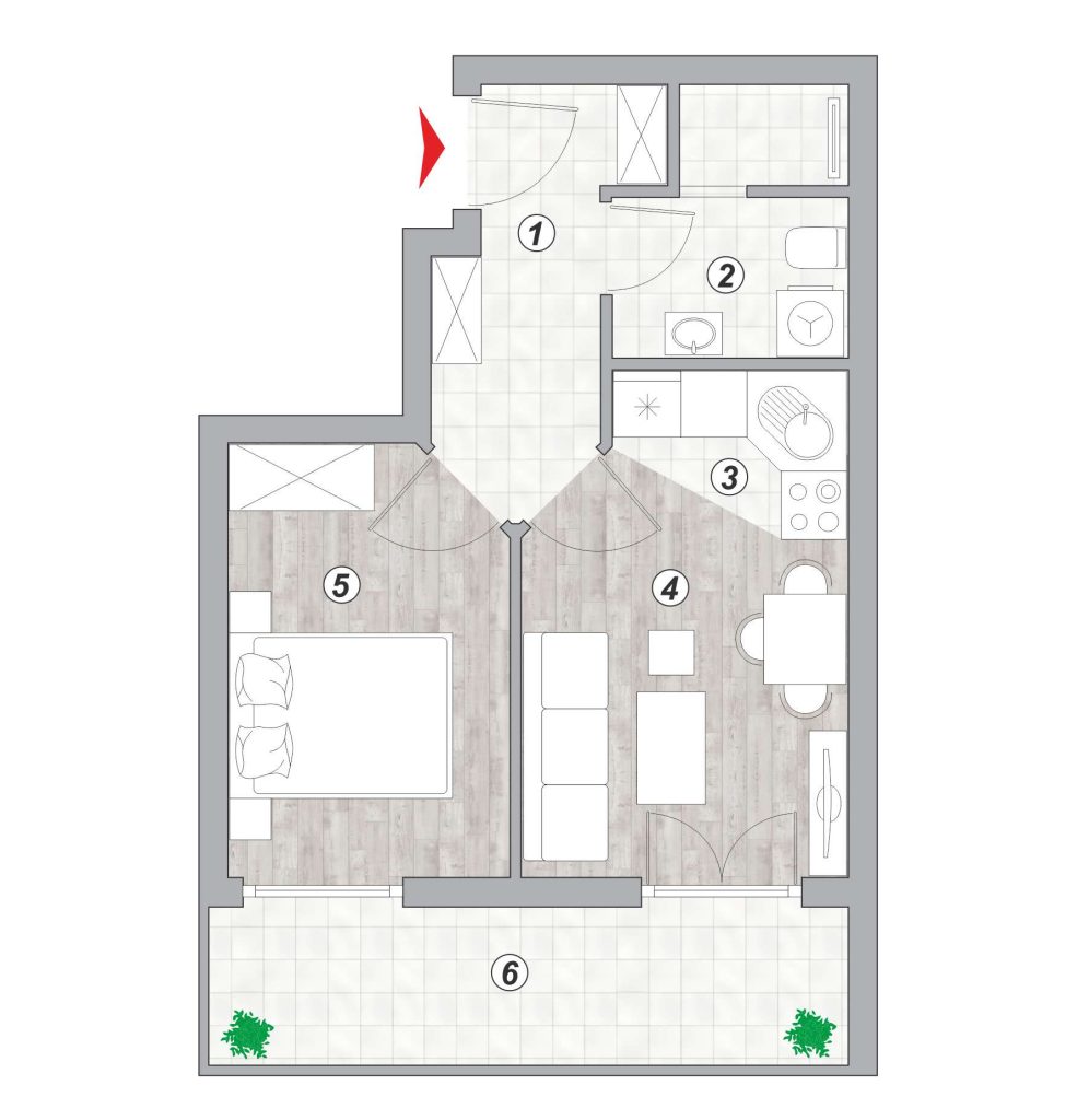 Lamela 1 – Stan broj 63 – dvosoban 35,66m²