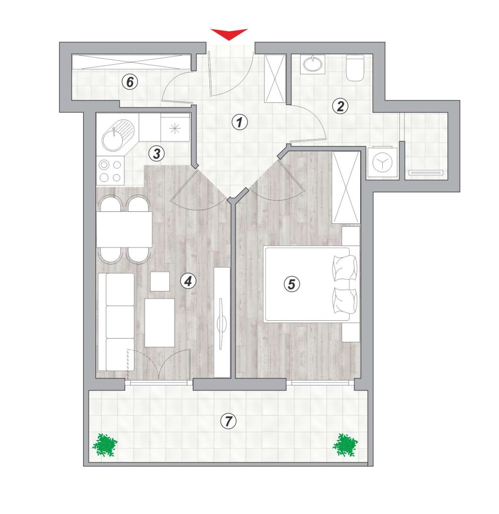 Lamela 1 – Stan broj 64 – dvosoban 42,99m²