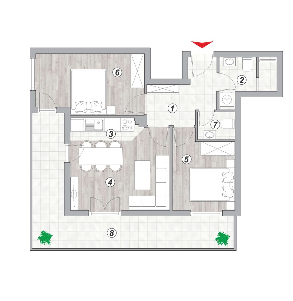 Lamela 1 – Stan broj 67 – trosoban 58,40m²