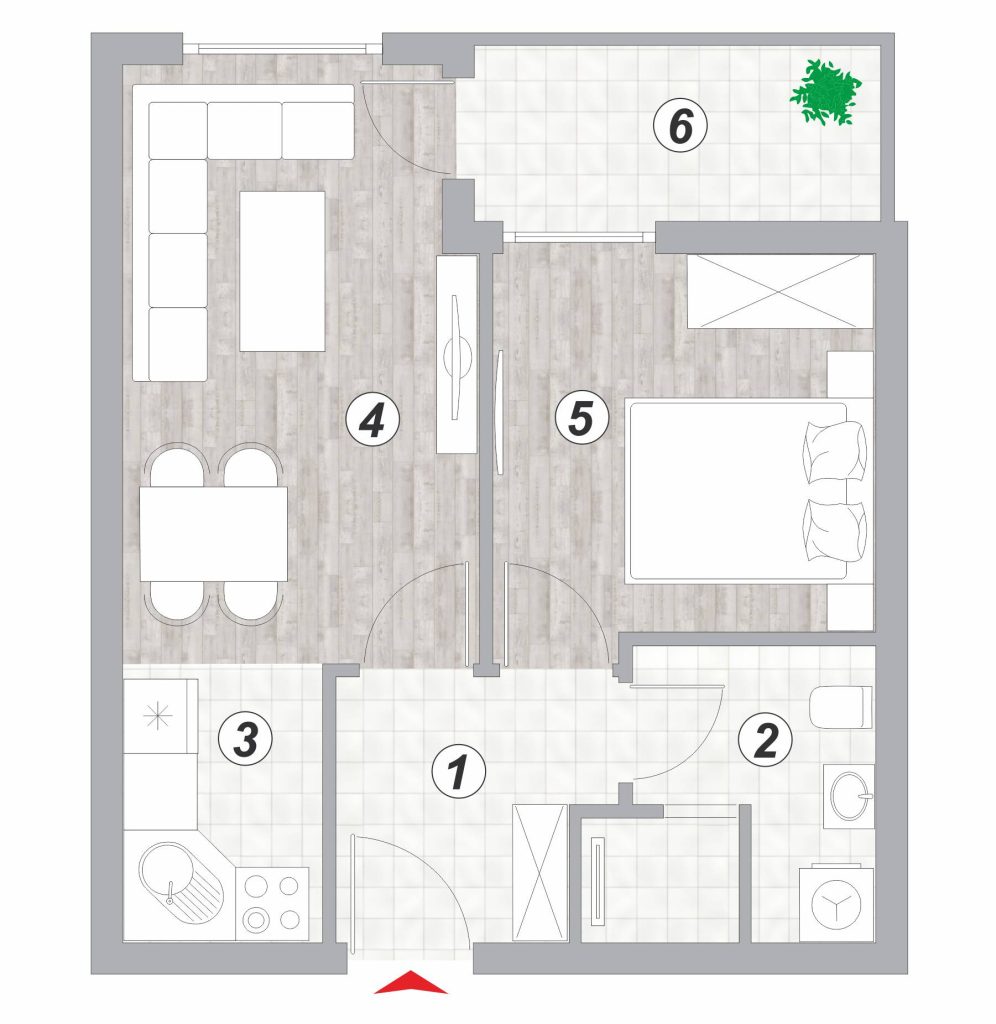 Lamela 2 – Stan broj 12 – dvosoban 37,53m²