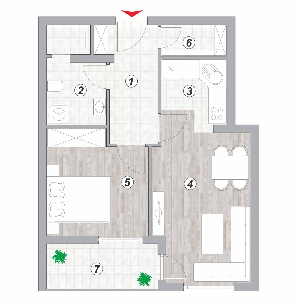 Lamela 2 – Stan broj 27 – dvosoban 45,09m²